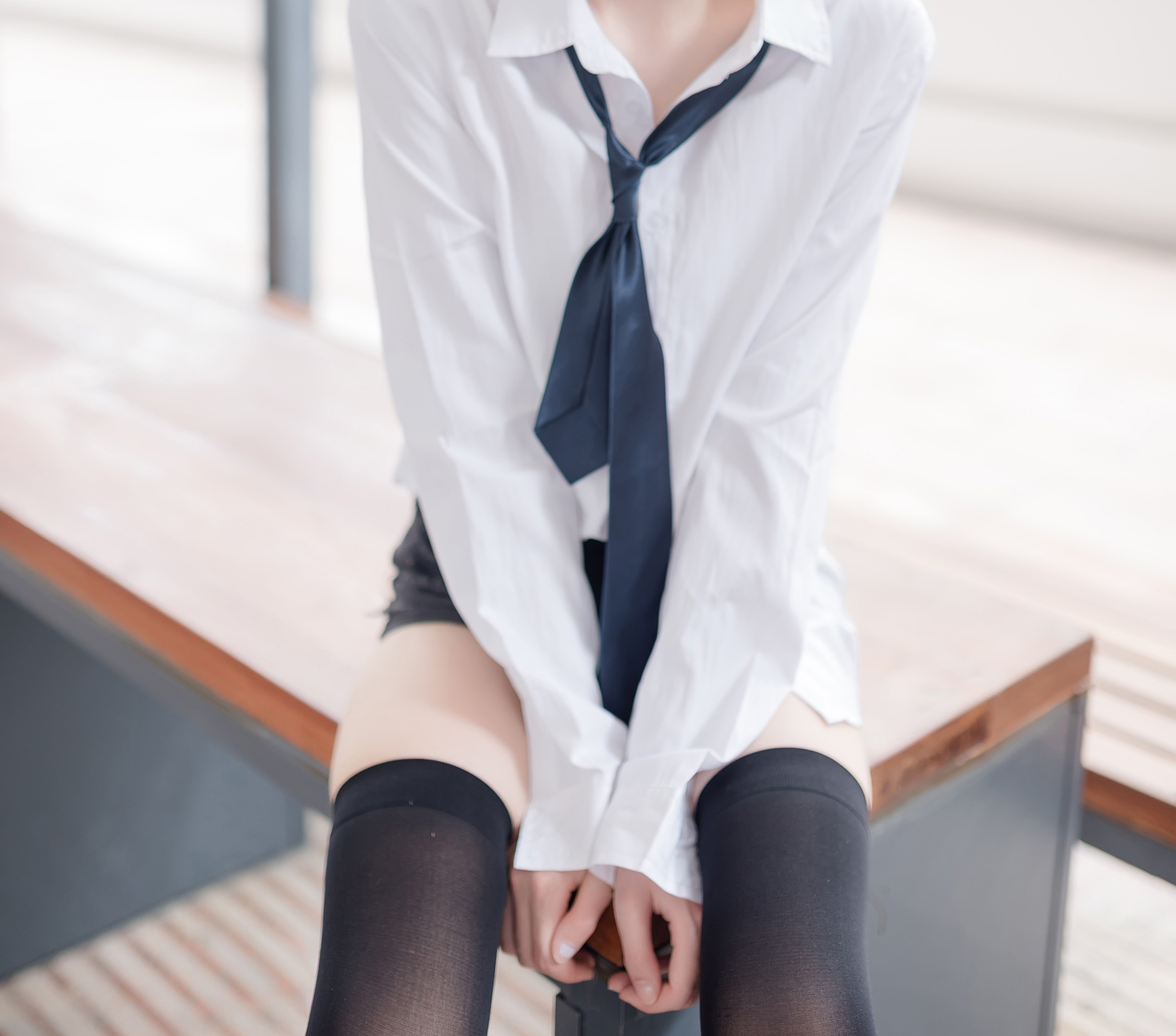 萌白酱福利—蓝色毛衣